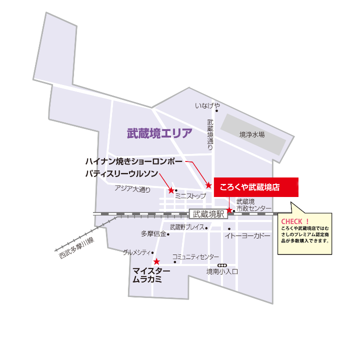 むさしのプレミアム認定商品のうち、一部が販売されています。