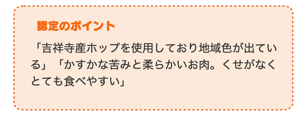 吉祥寺市内で収穫されたホップを、粗挽きソーセージにバランスよくちりばめている。香り高いホップのほのかな苦味がアクセント。さっと茹でたり、こんがり焼けば、同じホップ由来のビールのお供にぴったり。