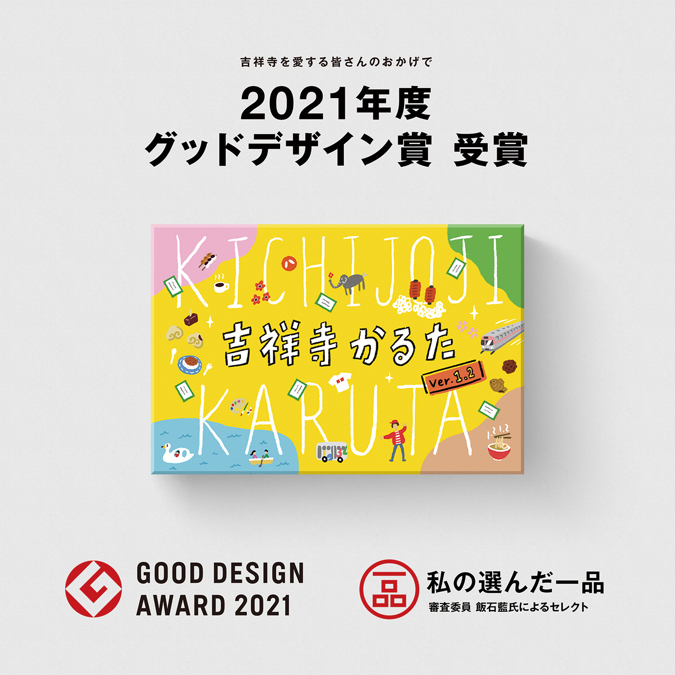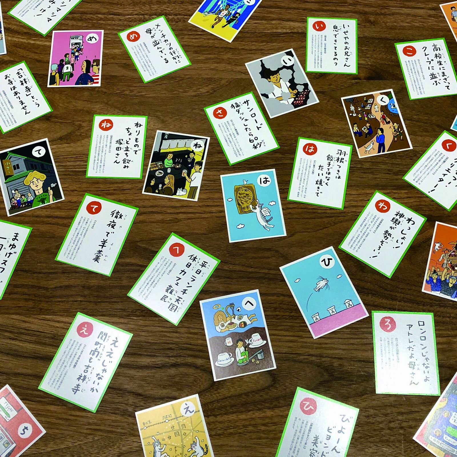 〈ねりものでちょっと立ち飲み塚田さん〉〈メンチカツの行列に母さんが並んでいる〉こんな「吉祥寺あるある」などが詰まった楽しい札ばかり。街の変化に合わせてアップデートをする、進化するご当地かるた。